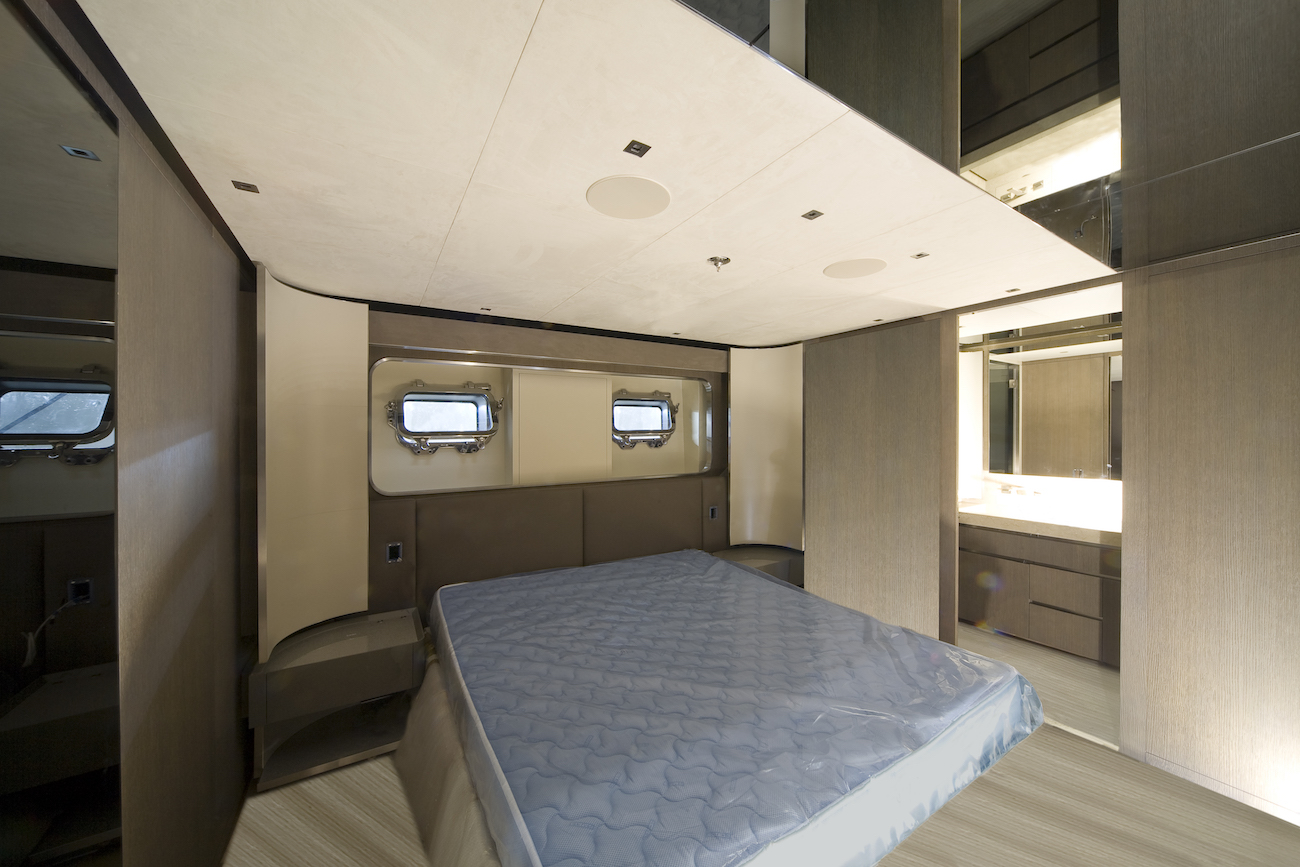 • Finishing works on VIP guest cabin (starboard aft) with ceiling panels completed and ready for freestanding furniture installation.