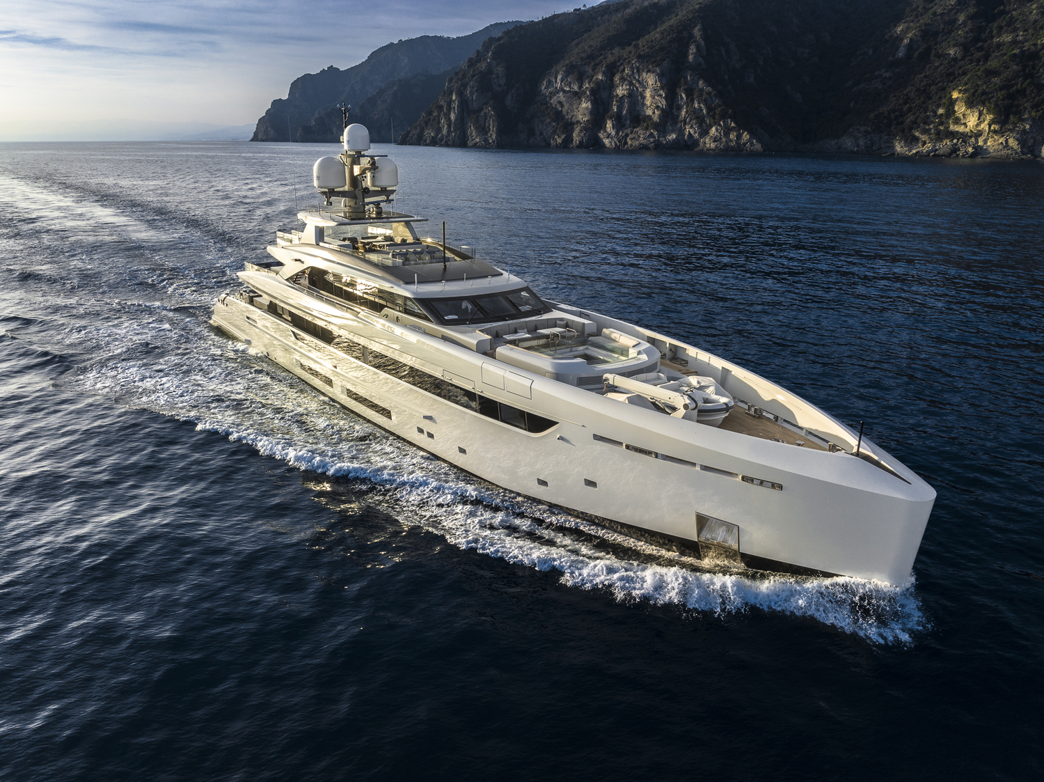 Guest on board will surely enjoy the fantastic beach club or appreciated the side-loading tender garage in the stern, while the crew has been placed in the forward section and includes the accommodation, service area, galley and crew mess.