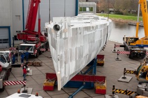 The new 49m Spirit of Tradition Ketch’s hull was turned successfully at the Royal_Huisman shipyard. The 49m Ketch with a hull number 388 stood upright for the first time and will carry on without a name until her official launch and christening ceremony.