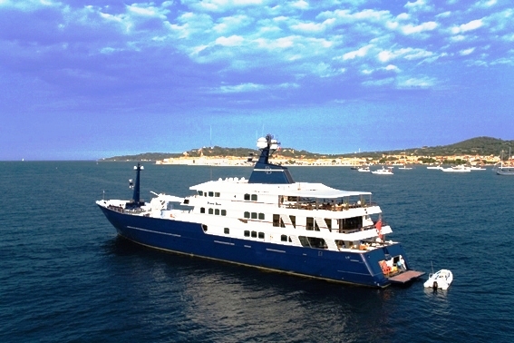 M /Y BLEU DE NIMES is a 58,70m (192′ 7″) explorer type luxury motor yacht which was built by Clelands of England in 1980 with interior design by Pier VIttorio Cerruti. BLEU DE NIMES was refitted in 2007 and she is currently available for yacht charters in the South Pacific, South East Asia and Indian Oceans where she can accommodate up to 12 charter guests in 9 cabins.