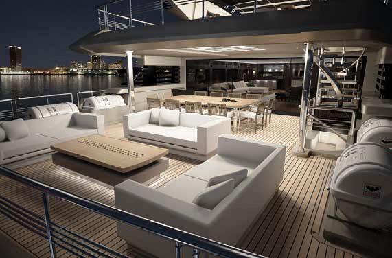 Her upper deck offers additional areas for socialising and entertaining, capable of hosting twelve guests for al-fresco dining with sweeping panoramic views.