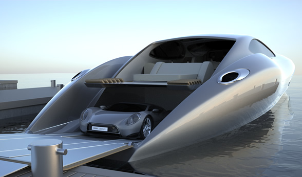 The most stunning feature on the Strand Craft 122 yacht is a special handcrafted supercar (Tender) powered by a 880hp twin turbo V12 engine with topspeed 375kmh can be housed in as a tender in the stern garage.