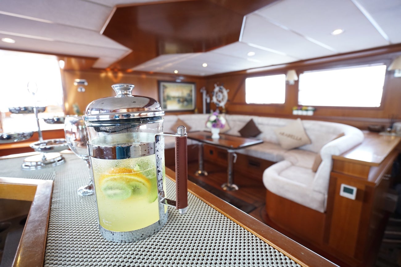 The accommodation sleeps up to 8 guests over 4 en-suite cabins: 1 Master suite, 1 VIP stateroom and 2 twin cabins. The enthusiastic crew of 4 will ensure that all guests receive first-class service throughout their stay.