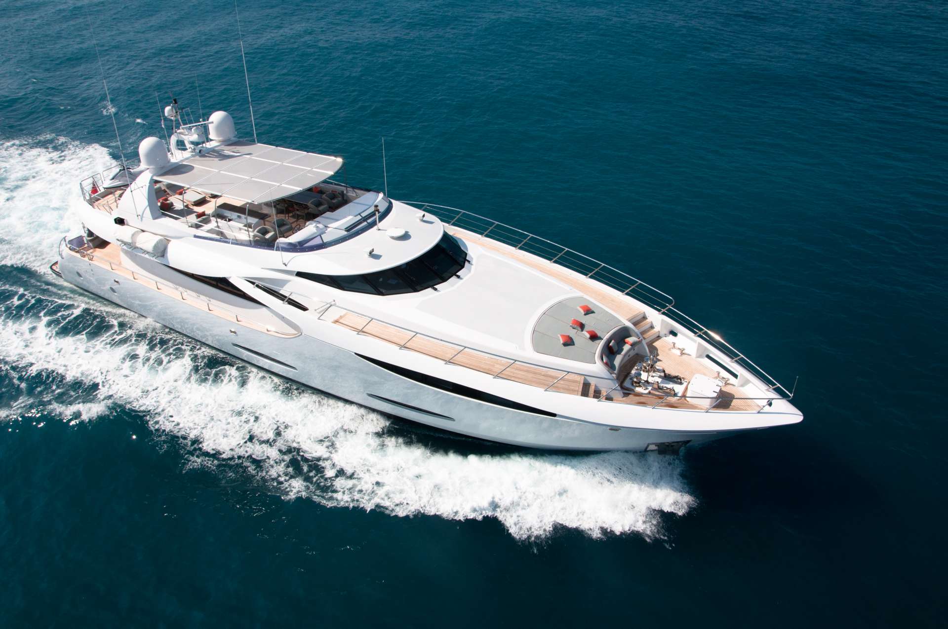 When you have a need for speed, Pershing has your answer, and in this case it’s 28m/92.2ft open yacht BALOO III. Capable of a maximum speed of 42 knots and a cruising speed of 32 knots, you can move from your remote island getaway to the party centre in no time flat.