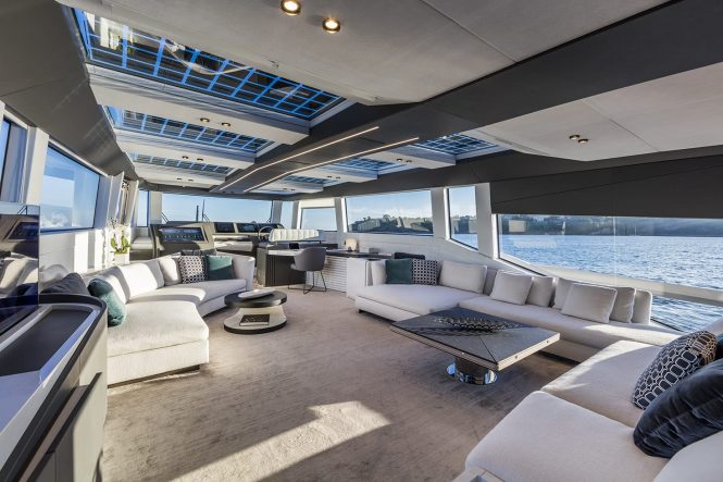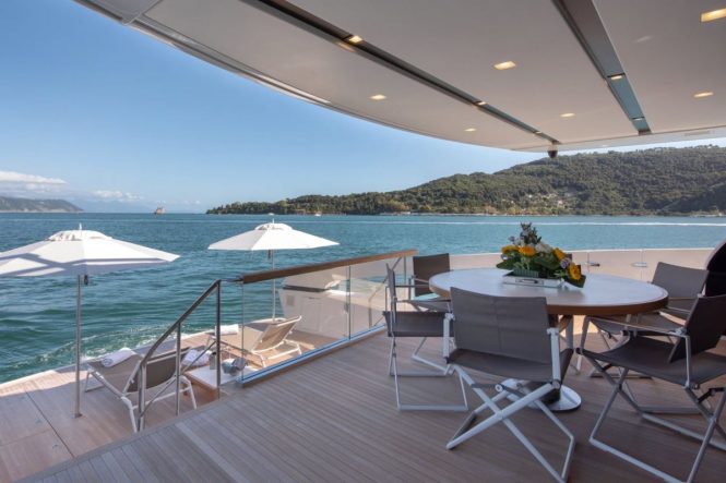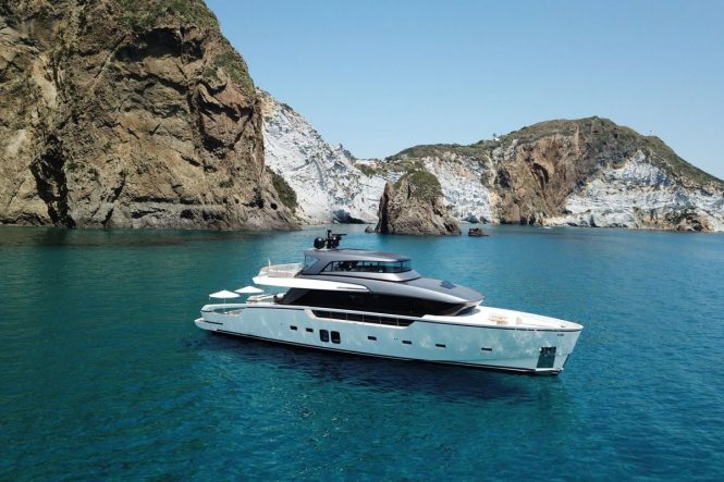 Sleek and contemporary motor yacht OZONE from Sanlorenzo is the perfect craft for hosting glamorous parties: Her interiors exude refinement with top quality wood varieties and fabrics creating a welcoming and intimate environment. Four well-appointed en-suite cabins provide for up to nine guests, who will wake each day to spacious outdoor areas perfect for breakfast alfresco or an early morning exercise routine before heading off to the local beaches and trails.