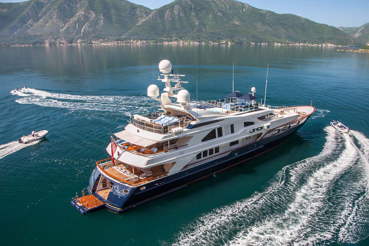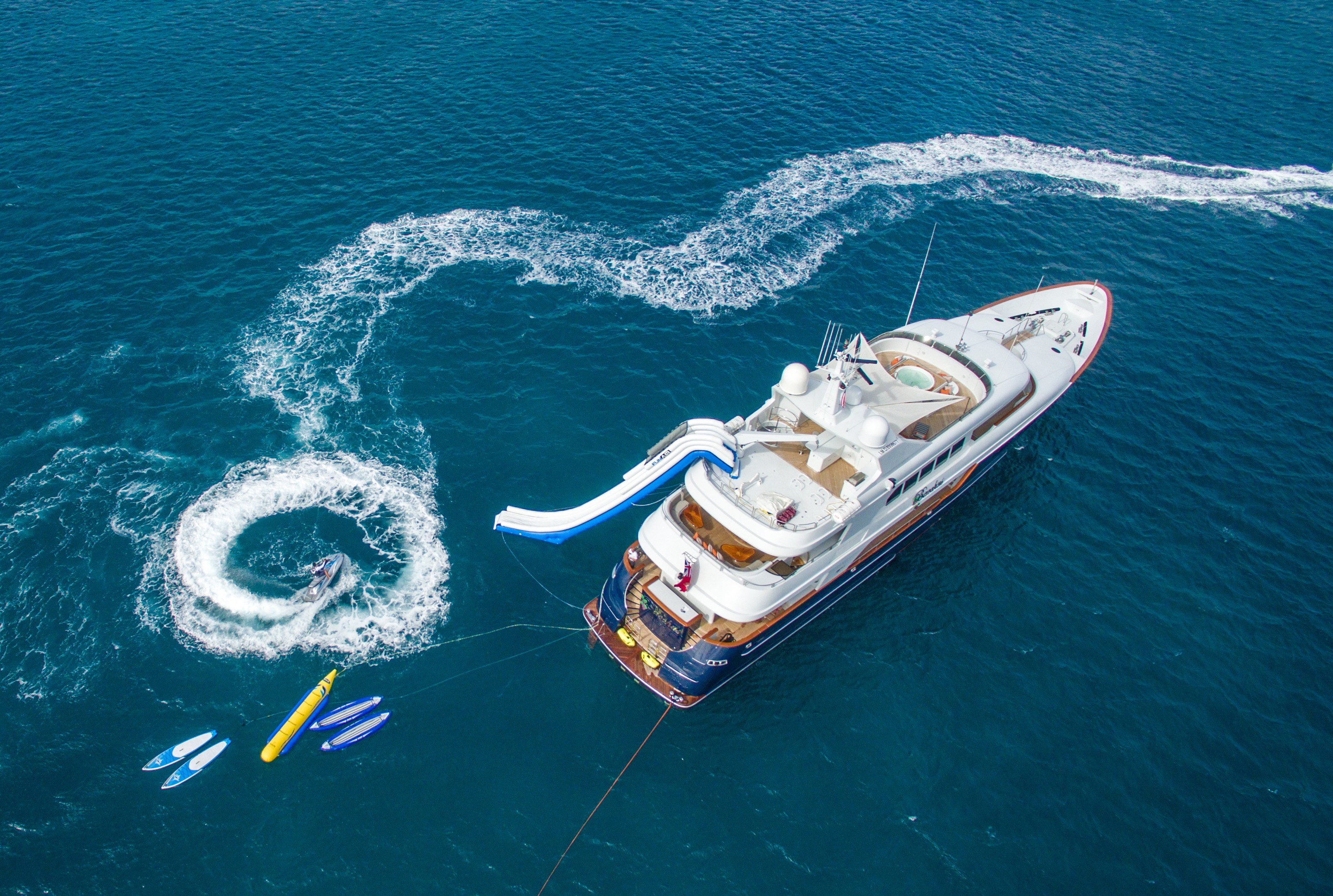 Motor yacht JOY from Feadship is an award-winning charter option for couples escapes, families with young children and for those looking for an exceptional environment in which to celebrate Christmas and the New Year. Every guest will wake up to a spacious and brightly illuminated cabin, and the Master suite further indulges its guests with skylights and floor-to-ceiling windows and glass doors creating 180 views to the aft. Fitness fanatics have a fully-equipped gym and a foredeck that converts to a basketball court that can also be used for volleyball, football, badminton and yoga. Re-hydrate with a fruity cocktail from the glamorous main salon bar, then sink into the sundeck Jacuzzi or relax knotted muscles with a professional massage. Use the afternoon to learn about the jet skis aboard this Approved RYA Water Sports Centre and end the holiday with a new skill under your belt.