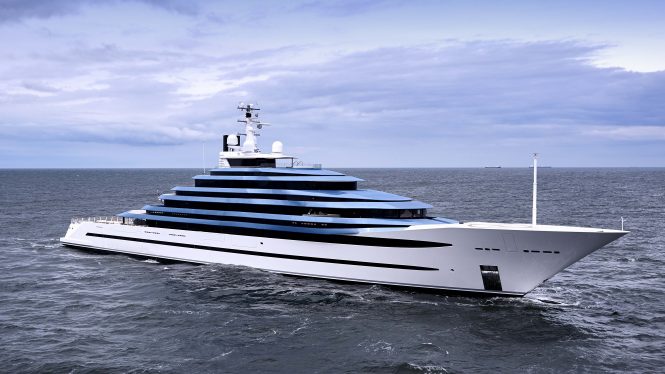 Having a background in automotive and industrial design, Igor Lobanov is well-suited to the superyacht industry and has a firmly established reputation for breaking established boundaries on what an exterior layout should and shouldn’t be. His work has been described as bold and futuristic and nowhere is this more apparent than with the recent launch of 110m/360ft motor yacht JUBILEE, the largest yacht launched in the Netherlands to date. The sweeping, wavering hull hides its number of decks with an optical illusion that continues even after sundown: Over two kilometres of LED lighting on the true and illusory deck overhangs illuminate her while guests maintain their privacy behind darkened windows.