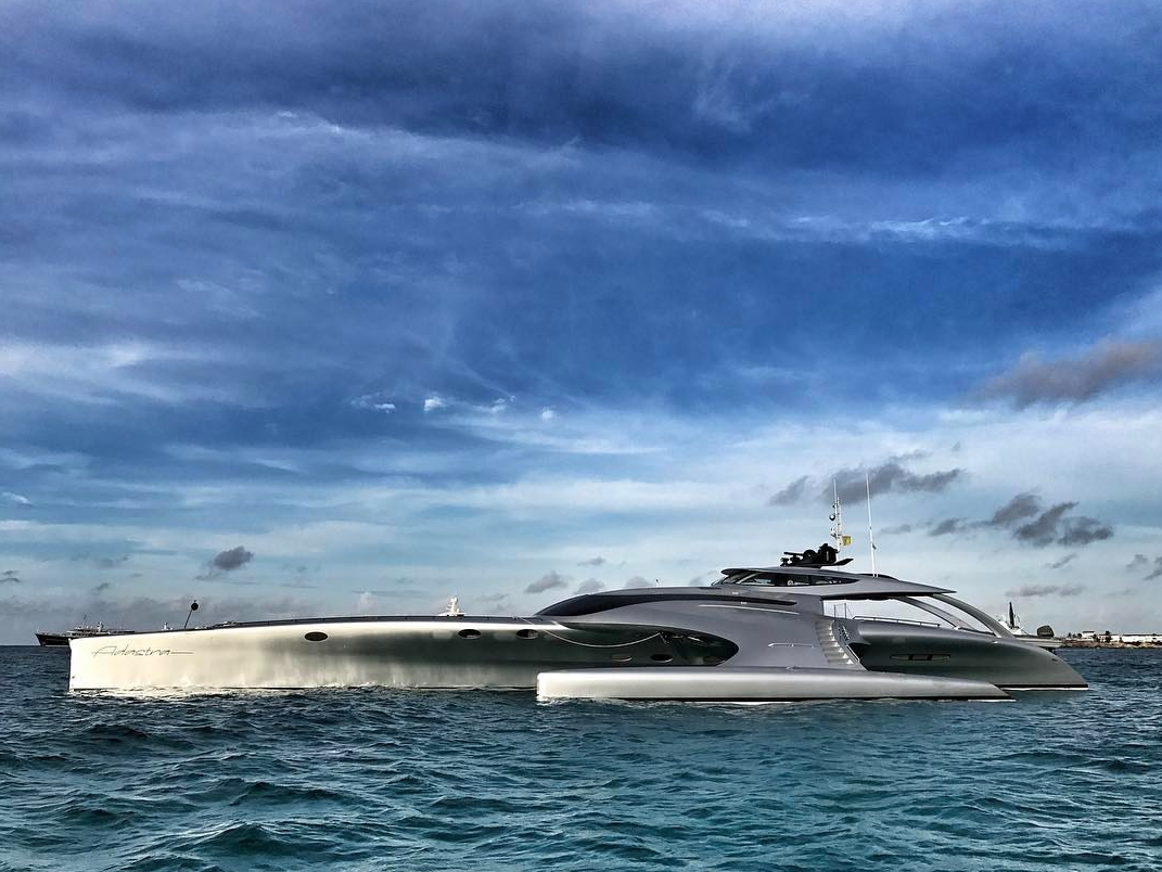 The 42.5-metre trimaran Adastra is another unique superyacht has recently joined the world charter fleet. She was recently spotted in St Maarten, the Caribbean, where she is currently available for charter. Adastra’s owner in collaboration with naval architects and exterior designers from John Shuttleworth Ltd worked on her exterior. Among her outstanding features are fantastic seakeeping capabilities and low fuel consumption. She has plenty of room to sleep 6 guests and 5 crew members. She is even capable of carrying two tenders and water toys.