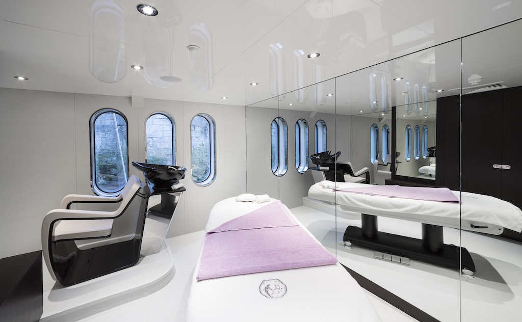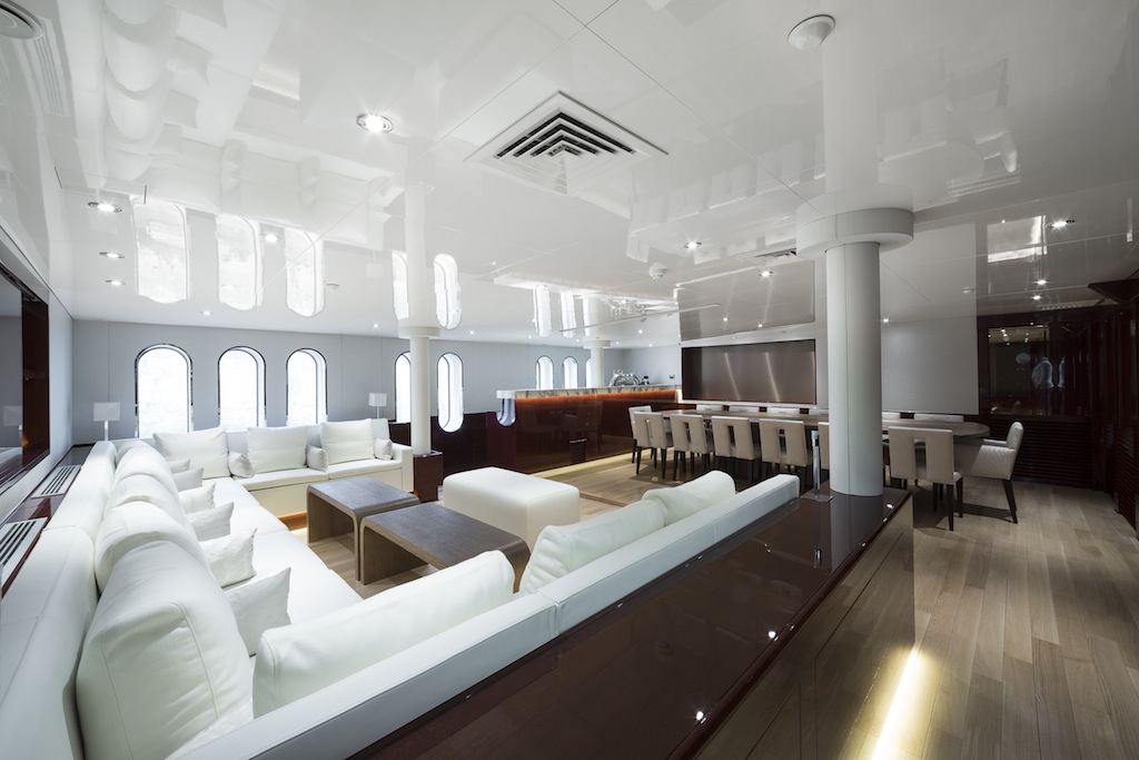 The main deck now boasts five spacious guest cabins, a wellness room and a gymnasium. The former officer’s mess has been transformed into the main saloon. Confronted with limited headroom and little or no port lights, the yard and the designers fitted 27 large port lights, 1,2m high, allowing more daylight into the cabins and common areas.