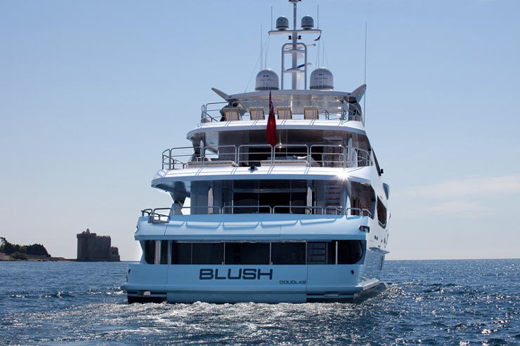 The tri-deck 155 motor yacht, Blush, is extremely advanced and the biggest yacht to come from the Sunseeker builders. The elegant furnishings inside are all done in beach tones of seashell and pale green so you will feel like you are at the beach on and off the boat. The blush has said to “zen” like in its interior for that trendy and chic 10 guests you want to invite aboard. The Blush has exceptionally large windows and a skylounge that won’t let you miss a view when you charter her to West Mediterranean in summer.