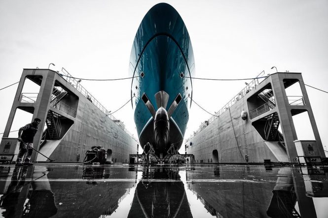 Built to Lloyd’s Registry standards, the yacht has a steel hull and aluminium superstructure. GO will be undergoing her sea trials this Spring and will be delivered to her owner in the last quarter of 2018.