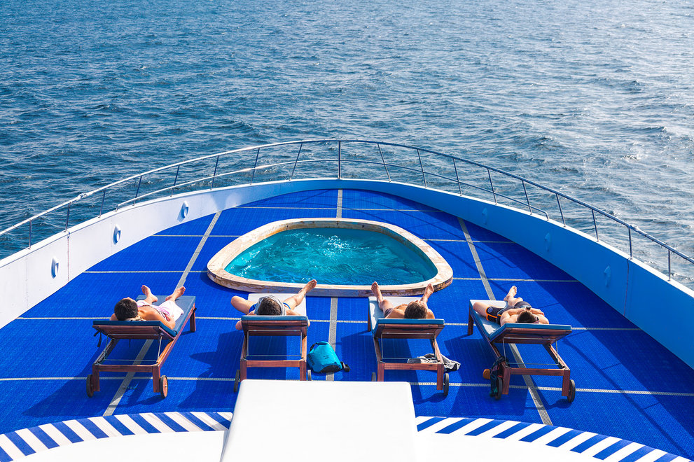 Life outdoors is particularly celebrated and guests have an abundance of outdoor space to stretch out and relax with a good book in the shade, or soak up the sunshine and admire the views from the foredeck saltwater spa pool and sunbeds.
