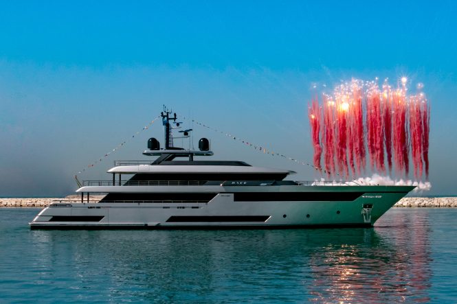 At launch, superyacht DRAGON became the latest flagship for Columbus yachts. The onboard features include a sundeck counter-current swimming pool with a hydro-massage area separated by a waterfall, a beach club that has fold-down side-terraces and a private Owner’s deck with its own en-suite bedroom.
