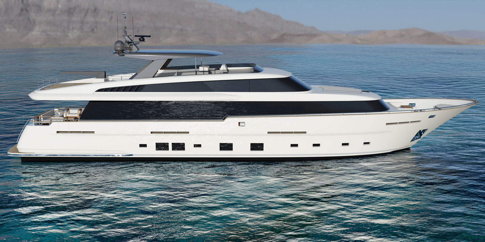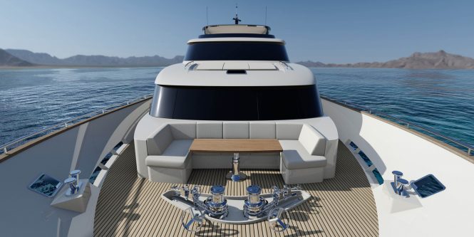 If constructed, the 32m raised pilothouse yacht would be built from an aluminium hull and superstructure and become the second largest superyacht built by the yard, bested by 37m/121ft luxury yacht SANTA MARIA T.