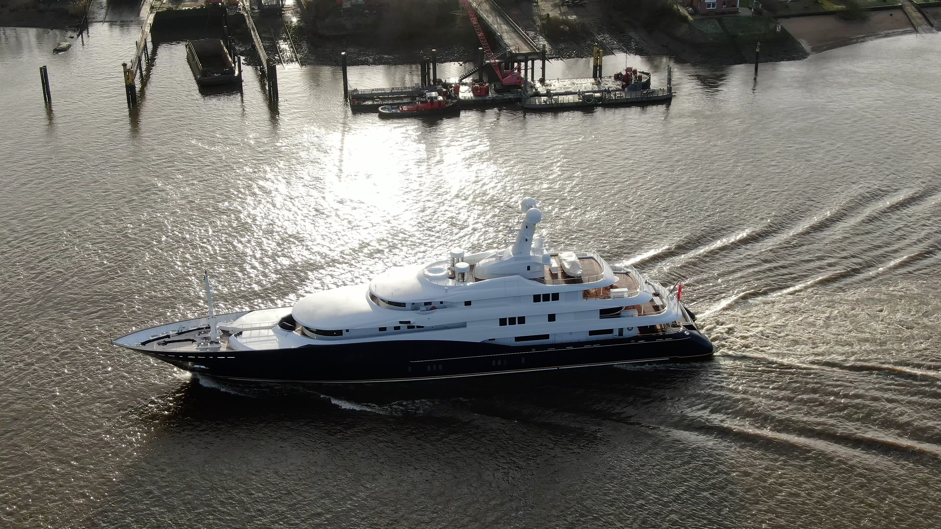 The 78.43m (257’4″) mega yacht C2 has been spotted by DrDuu today, while on her way to the Abeking & Rasmussen shipyard for refit and service. Launched in 2008, this magnificent superyacht features timeless exterior lines as well as deluxe interiors with great indoor and outdoor spaces for socialising and relaxation designed by Reymond Langton Design.