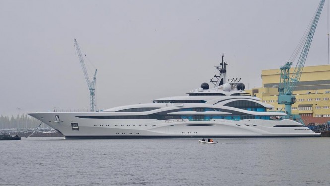 Lurssen superyacht AL LUSAIL (ex.PROJECT JUPITER) has been spotted returning from her sea trials in the North Sea.