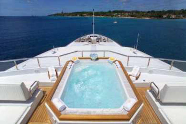 The sky lounge is of a generous size – perfect for entertainment and social gatherings. Motor yacht Apogee offers a spa centre with a gym, a huge 12-person Jacuzzi, two bars and plenty of space to top up your tan.