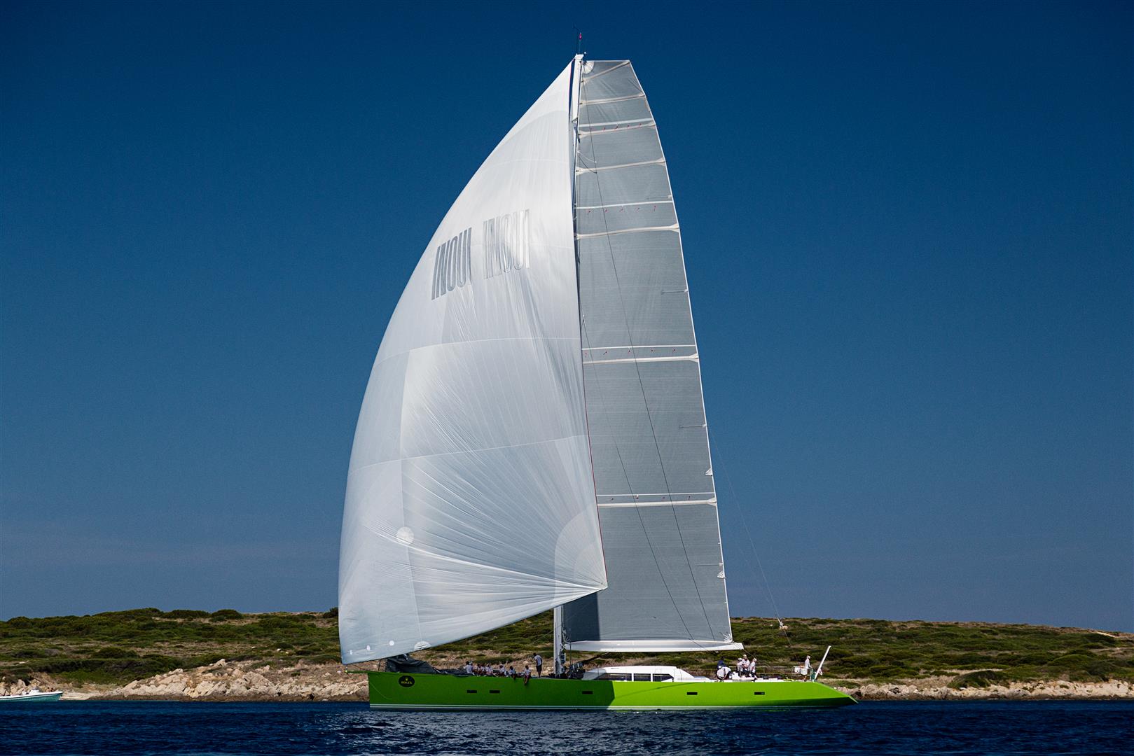 Luxury yacht Inouï is an eye-catching performance yacht in many ways. With her hull in carbon, lifting keel, lightweight interior and high roach square main, she is destined to perform well. And with her striking green hull, Inouï certainly stands out from the crowd.