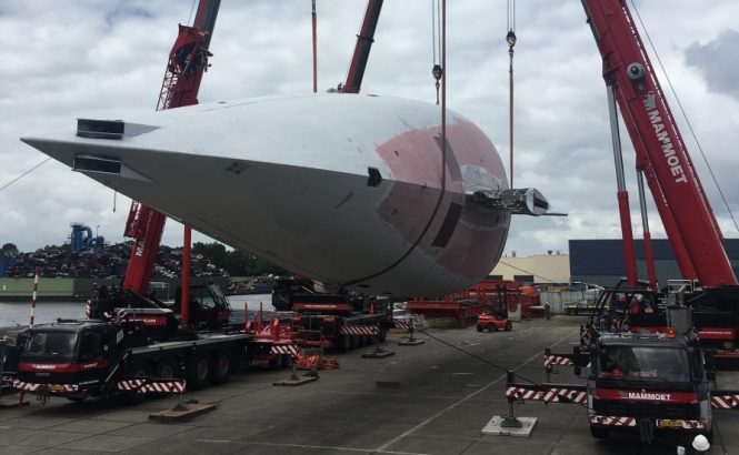 Dutch shipyard Vitters has announced that they have turned the hull of their Vitters 50m/164ft sailing yacht, which features naval architecture from another Dutch company, Hoek Design.