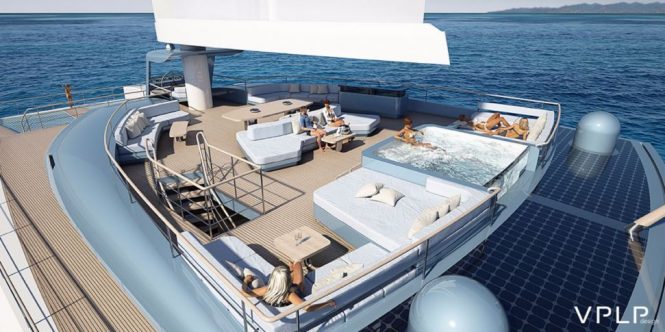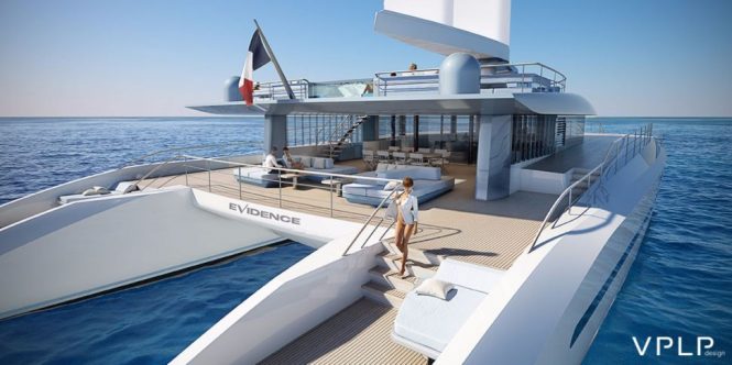 W/Y Evidence offers the performance, space and stability of a catamaran with the extra bonus of a simple yet pioneering rig. Designed by the French based naval architects VPLP, Evidence, a cruising multihull, can accommodate a maximum of 12 guests and 10 crew. She was specifically designed for crossing the Atlantic or further afield. Her automated wingsail and mechanical propulsion which can also be electric gives her an incredible range. This will allow you and your crew to enjoy the peace and pleasure of sailing under wind power, what joy!