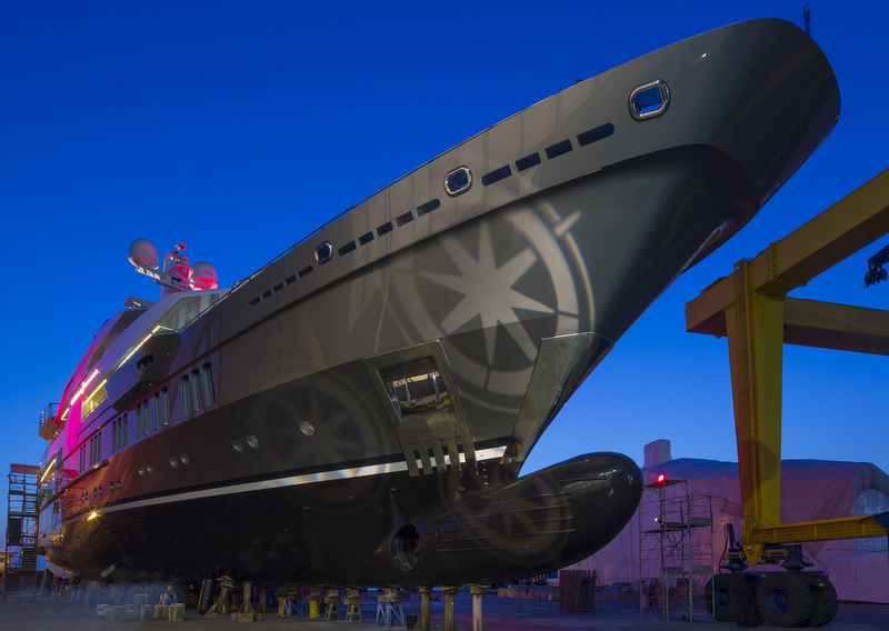 There she will remain for some weeks to complete the final preparations for her transfer on a floating pontoon to the Arsenal in La Spezia where she will finally touch water at the official launch. After this, she will take to the open sea with her fortunate owner until September when she is certainly destined to make a big splash in Monaco during the Monaco Yacht Show.