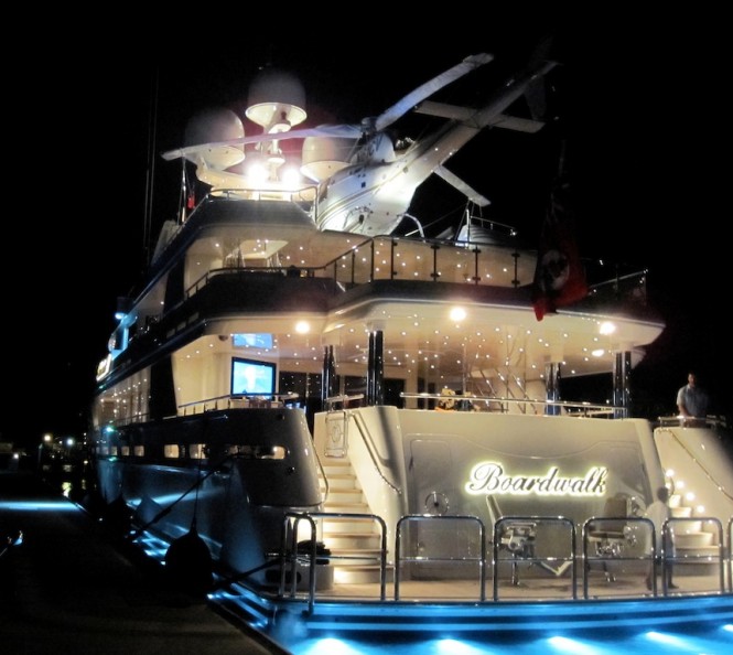Two more photos of the beautiful recently launched Superyacht Boardwalk show a few details. The motor yacht was launched in July 2010 and she is the 7th hull in Westport Yachts’ 164 flagship yacht series.