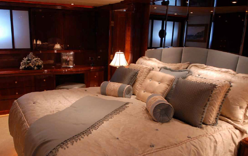 The Prestige Lady megayacht features four staterooms which include a full beam on the deck Master with bi-level bathroom. Below deck accommodates three additional staterooms including a second full beam Master/VIP stateroom with his and her bath, a queen and a twin guest stateroom.