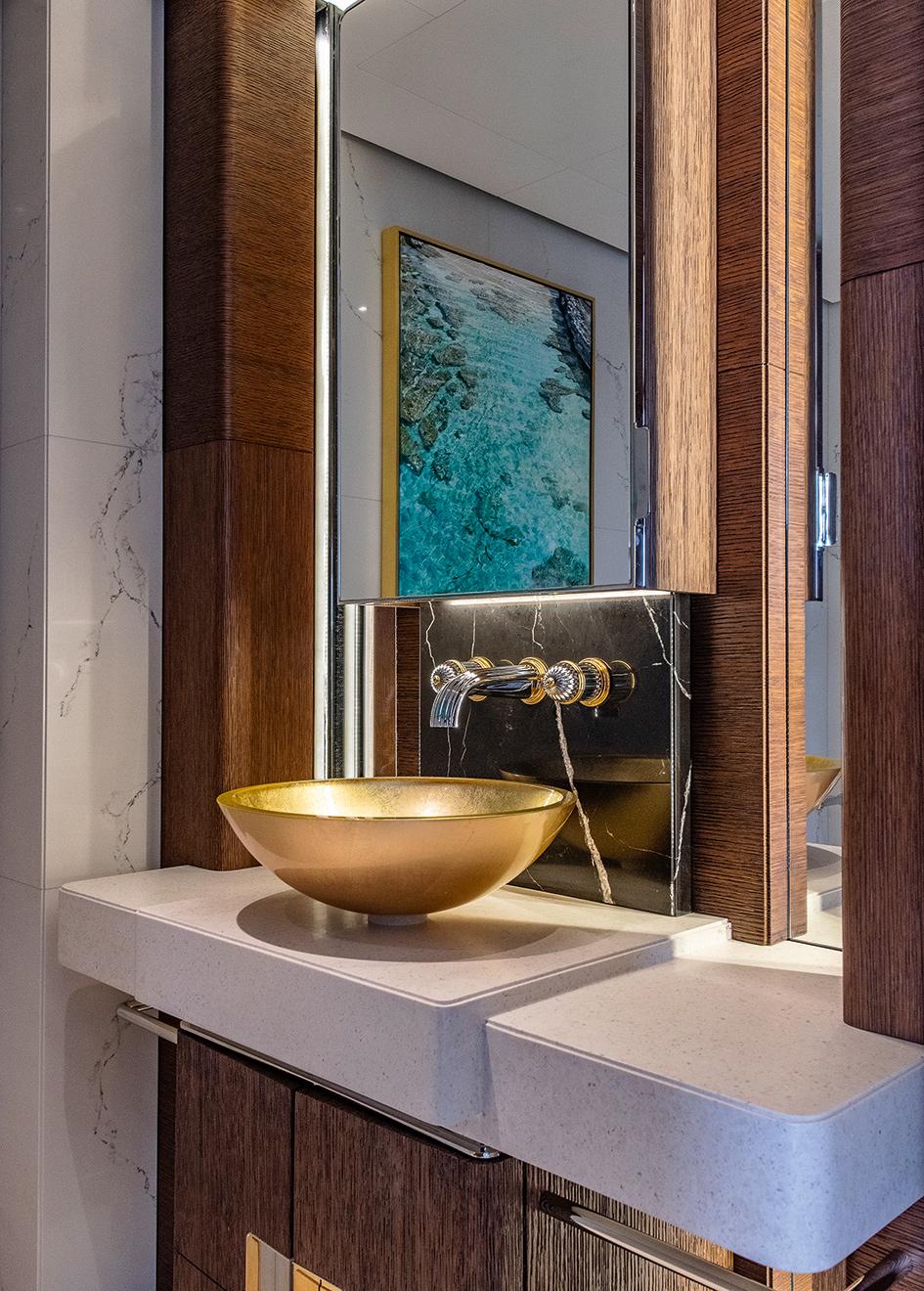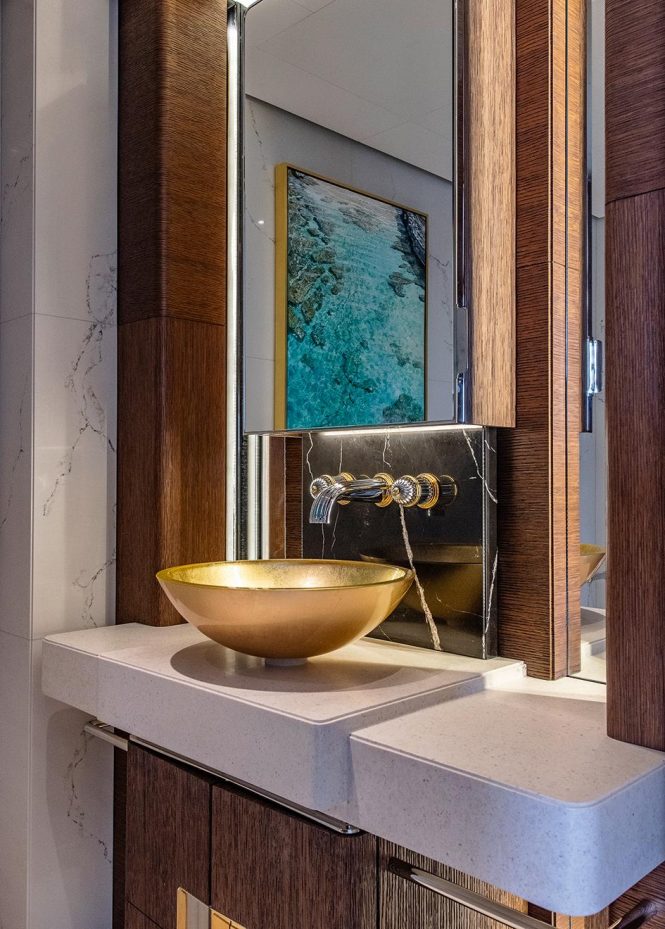 As the crew of 32 are on call around the clock, they are almost just as well catered for as the guests and have a massive mess and lounge on the main deck forward that has plenty of natural light and great views. Sorgiovanni requested the cabinetry and furnishings be custom made by Alia Yachts in Turkey following their quality collaboration on M/Y RUYA in 2016.