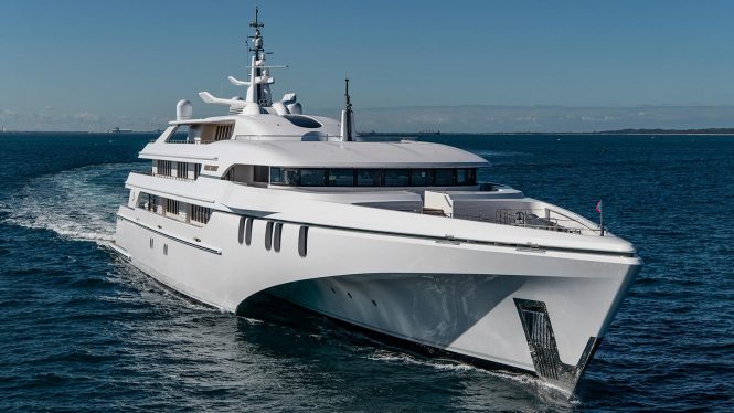 Trimarans such as 84m/275.6ft luxury yacht WHITE RABBIT are a rarity within the luxury yachting industry, however the benefits of multiple hulls have been well recorded, providing greater stability and with top quality contemporary naval architecture, a smoother cruising experience with reduced noise and less of an environmental impact.