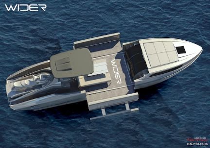 ‘Wider Yachts’ have been launched by Tilli Antonelli, who founded the Pershing brand of yachts in 1985. The ‘Wider’ names is derived from the fact that the mid-section of the 42-foot open cockpit boat can be extended port and starboard to double the usable surface and significantly increase the yacht’s stability.