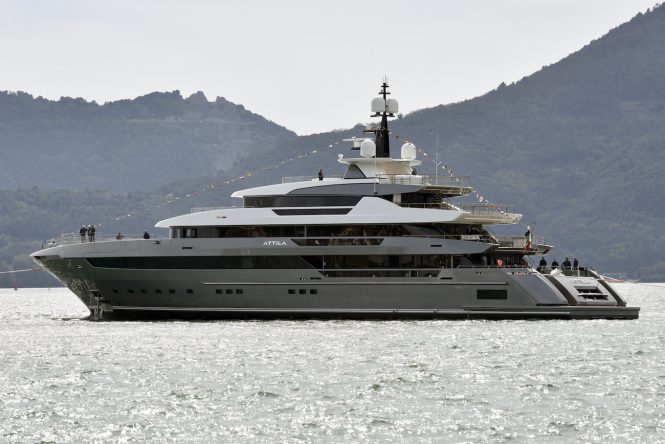 Sanlorenzo luxury yacht ATTILA is an imposing vessel that measures 64m/209.9ft and spans six decks. Her on board facilities include a spacious beach club, a massage room, sauna, Jacuzzi and a helipad.