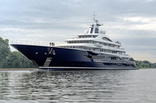 At 110m/364.2ft, mega yacht TIS is a presence on the water and has a top speed of 18 knots. British studio Winch Design were behind her award-winning interiors as well as her exteriors, and guest spaces include a glass-ceiling orangery-styled formal dining area on the top deck, a stone-carved grove of lemon trees in the spa that has gold-painted lemons, and classic furniture emulating the 16th-18th Centuries across the decks.