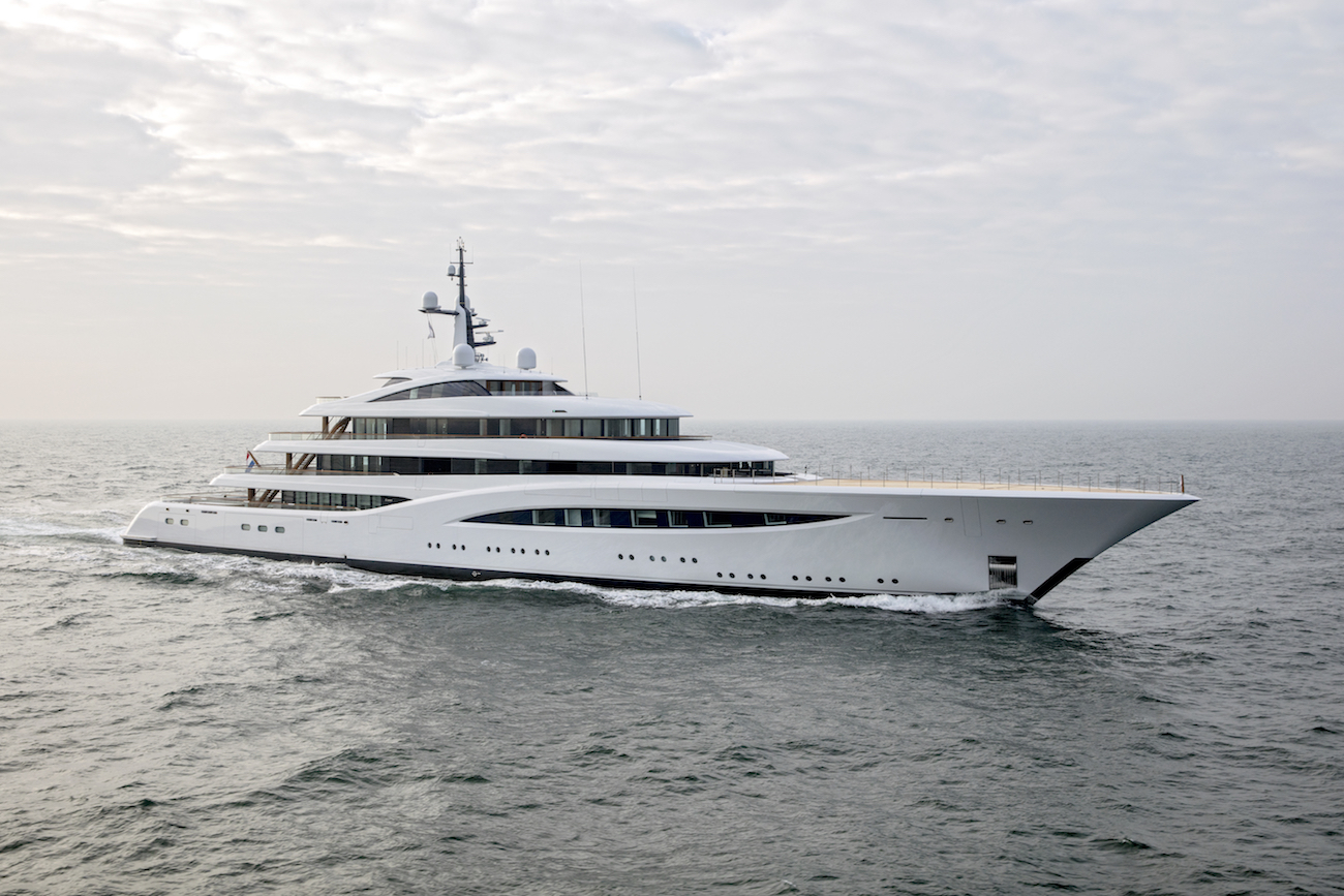 S/Y A from Nobiskrug won her Neptune award on the basis of her technical systems and environmental aspects: Across eight decks there is an underwater observation pod, a sizeable swimming pool, a touch-and-go helipad and crew accommodation for up to 54.
