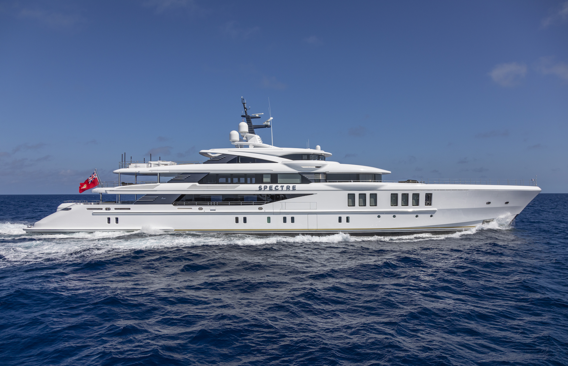 69m/226ft Benetti superyacht SPECTRE was built for an Owner whom had previously owned luxury yachts and had very specific requirements, among which was a top speed of 21 knots – 5 knots faster than previous builds of the same size. Naval architects Mulder Design achieved this by creating a fast displacement hull that is 133 tonnes lighter than a hull of similar design. Carbon fibre reinforcement is used to maintain structural integrity, and motor yacht SPECTRE is capable of an exhaustive 6,500 nautical miles at economical speed.