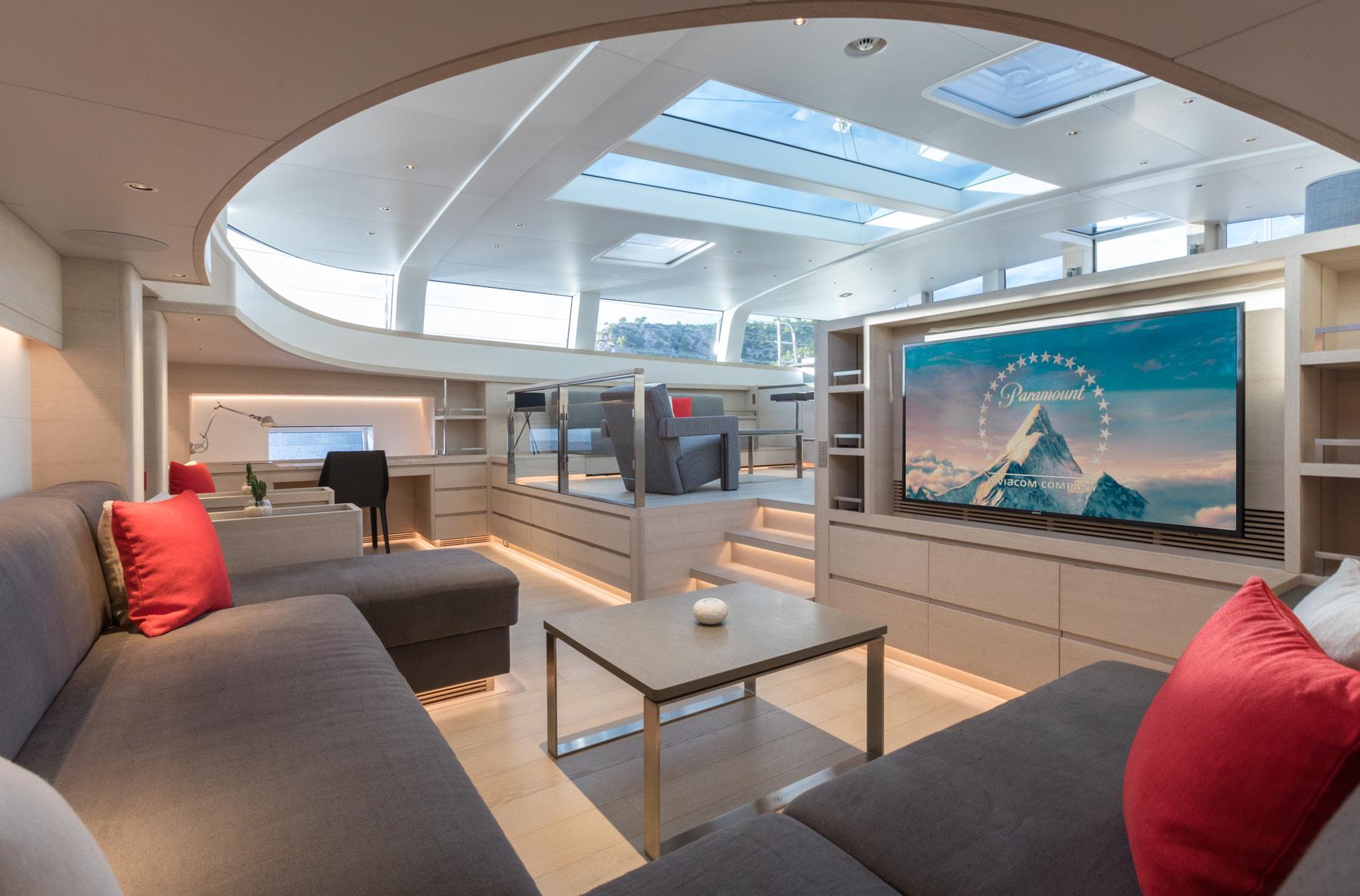 The now dated ochre-coloured panelling was replaced with a lighter wood from Nauta Design, and 11 larger portlights were added to the guest accommodation. The Master suite was given a new layout and increased in size, which required the moving of structural bulkheads.