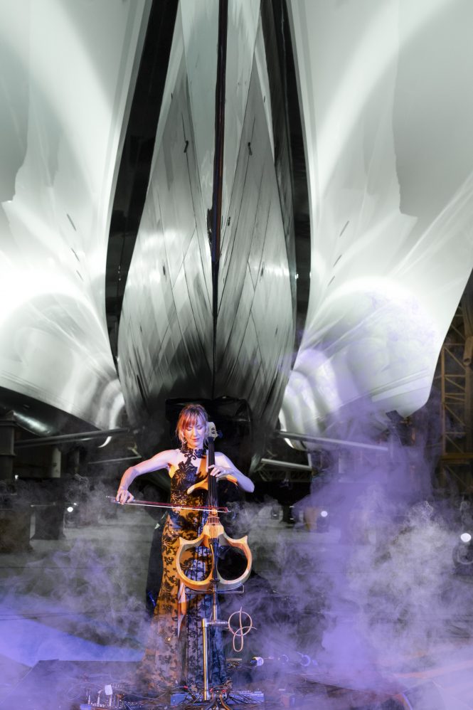 Australia-based Echo Yachts has hosted an unveiling party for its 84m/275ft luxury trimaran WHITE RABBIT GOLF, which upon her launch will become the world’s largest trimaran. The design comes from Sam Sorgiovanni and One2Three was responsible for her naval architecture.