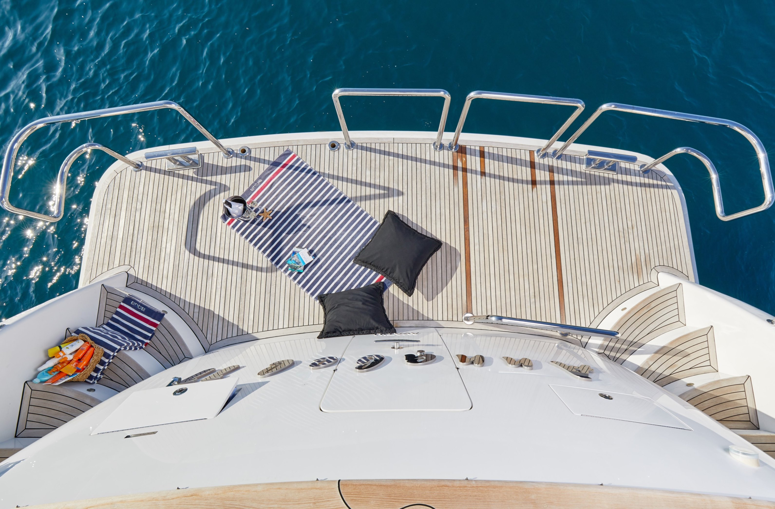 Sunbathers will gravitate towards the broad sunbed across the foredeck, where there is peace and quiet and uninterrupted views of the surroundings. This is also the perfect place to watch the sunset together on the forward sofa.