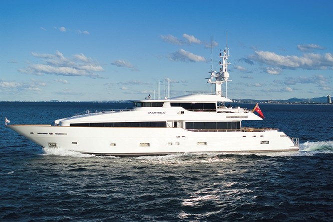 The 37.1m Monte Fino motor yacht Masteka 2 is being exhibited by Marine Auctions at the Sanctuary Cove Boat Show and she will be auctioned at 10am on Saturday, May 21st. This environmentally-friendly expedition style superyacht Masteka 2 is powered by twin Caterpillar C32s producing 1675hp each. It will be interesting to see how the Australian superyacht auction goes.