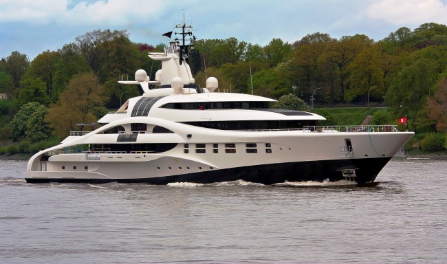 Klaus sent in some very interesting new superyacht images of the Blohm & Voss 96 metre (314.96ft) Orca (now called yacht Palladuim) superyacht in Germany. The ORCA yacht not only has an inspired name (named after the king of the sea the killer whale) but she has inspired yacht design by Michael Leach Design, in the Orca theme, with black and white markings and curved organic forms. A modern, powerful, innovative and futuristic superyacht, Palladuim is set to create quite a stir in luxury yachting circles and inspire media interest worldwide.