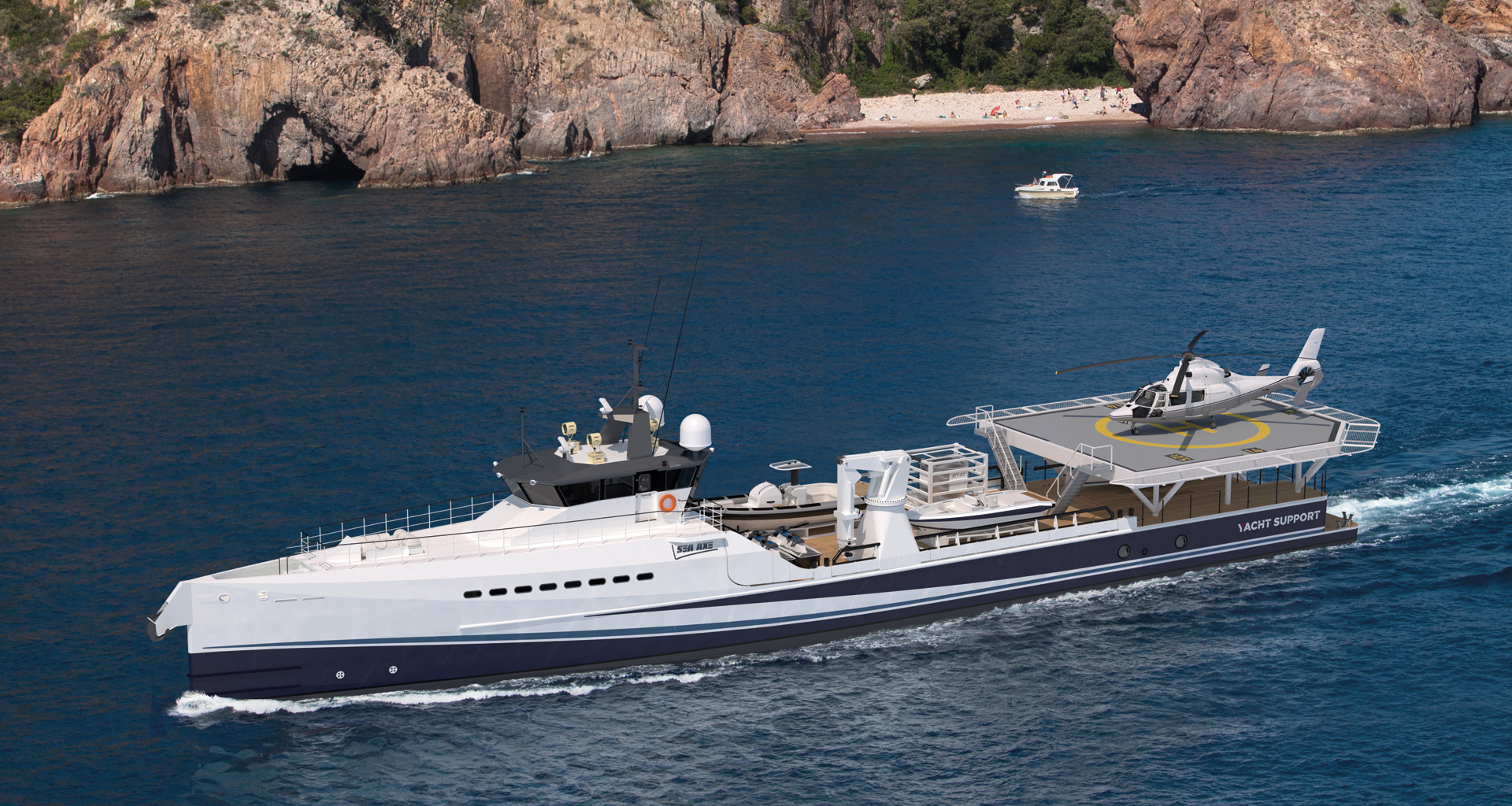 This design deviates from the regular standards or cliché and breaks the classic concept of building by decks, creating a homogeneous stern to bow passage without any interruption; the idea of an open walk around with an easy alternate of wide and long steps, moving from one deck to the other above while walking aft to bow, is really unique in the modern yacht design. Decks are blended and reproduced one on top of each other following the inboard walk-around, creating a highly functional layout and a breathtaking exterior profile.