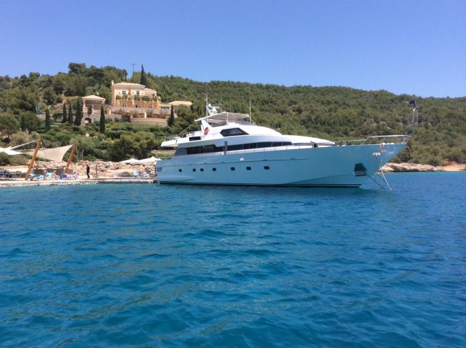 Explore Greek and Turkish coastlines aboard luxury yacht My Way. This well-designed and spacious 29m yacht provides modern amenities, such as Jacuzzi, outdoor bar, sunloungers and hammocks. Her imposing interior has a relaxing ambience and is great for hosting formal dinners. Accommodation layout consists of 4 cabins, including a full-beam master cabin, a VIP cabin and two twin cabins.