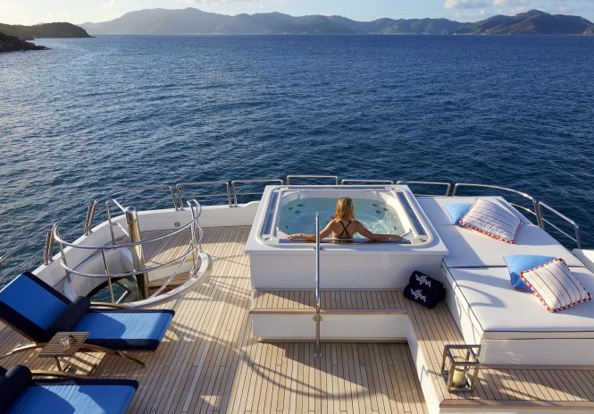 One of the most popular yachts on the charter market, Victoria Del Mar is a spectacular vessel with lots of fantastic amenities and accommodation for 12 guests. She was launched in 2006 and has been maintained in great condition. Some of her luxurious features include the outdoor cinema, Jacuzzi, alfresco dining options and elevator that serves all decks. There is an array of water toys available onboard which you can enjoy on your next yacht charter holiday: tenders, wave runners, sea bobs, inflatables, kayaks and other.