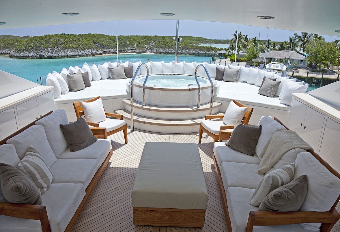 The Cocktails superyacht has been designed with a furnished Portuguese bridge. During the voyage, make the most out of the surroundings on the bridge when at anchor and while at sea. Also on deck are a few casual lounging areas that offer informal dining. The large table on the upper deck aft can seat 12 guests at one time for maybe a celebratory meal or a family get together.
