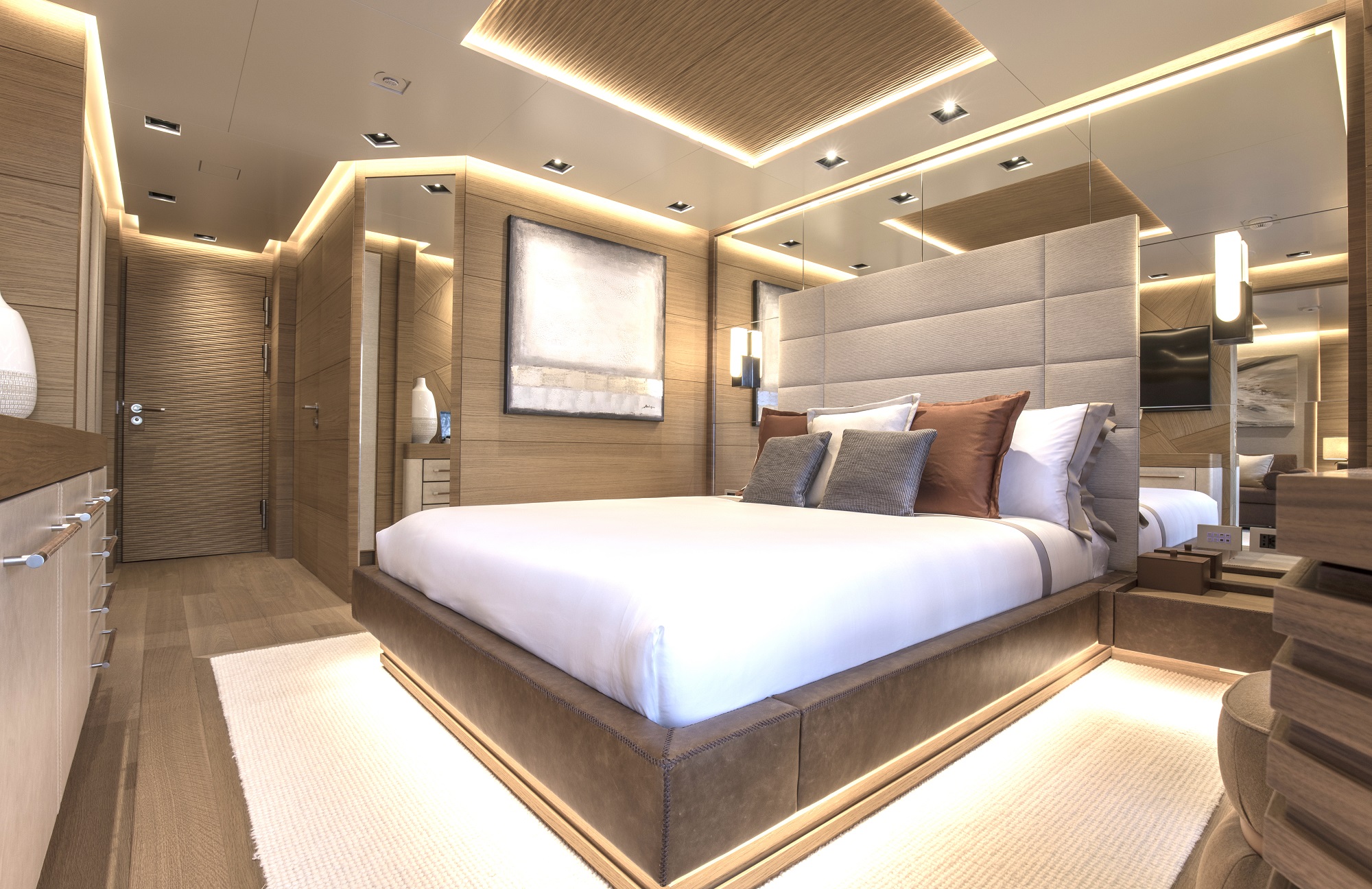 The Master suite on the main deck forward has its own private lounge as well as a bedroom, creating a tranquil place to unwind with hobbies away from distractions. The occupants have a king-sized bed to sleep soundly in complete comfort every night, and the generous bathtub is an ideal way to wind down after every adventure.