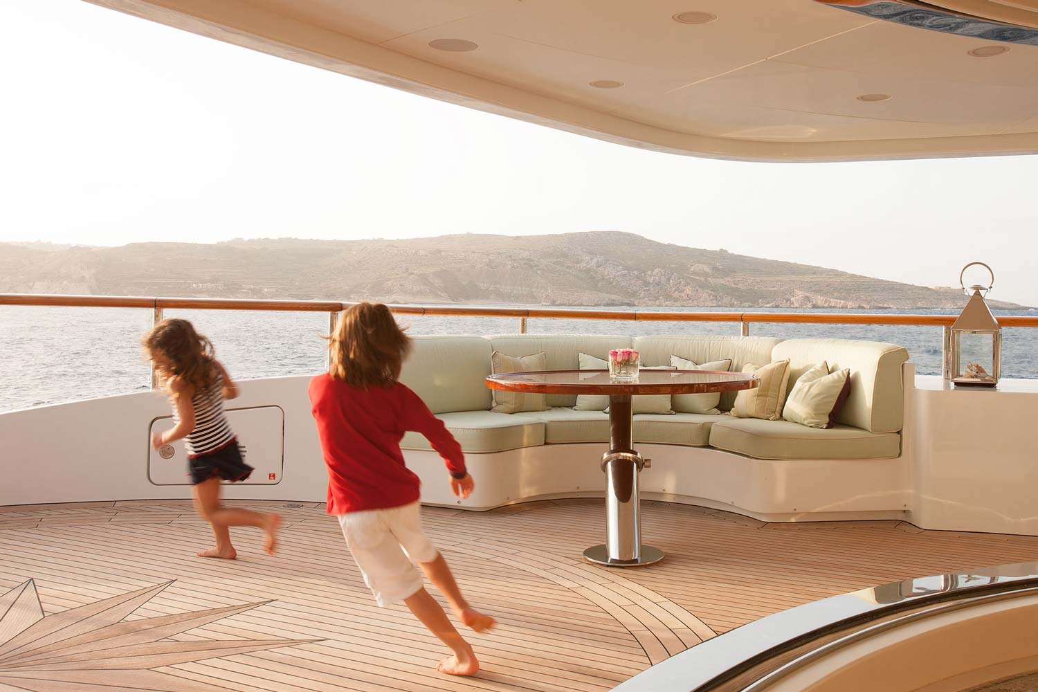 Soak up the atmosphere as the fun factor goes up a notch, it’s what superyacht partying is all about. The dance floor is in easy reach of the bar where the disco lights and sound system helps to complete a night club feel. If you want to tone things down a little, formal entertainment is also catered. Modular furniture can seat up to 24 guests for a sit-down dinner and drinks.